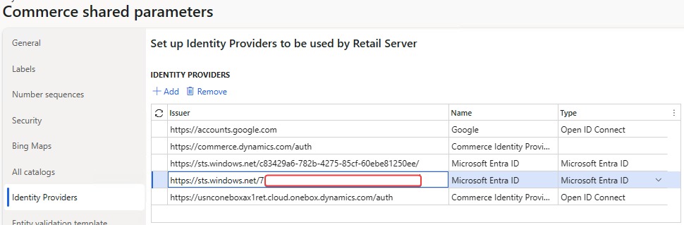 Execute the RetargetRetailServer.ps1 script. After the script finishes executing, a new identity provider will be created in AX for your organization’s tenant: