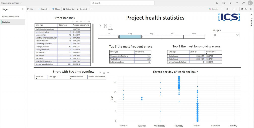 Health State Workplace (BI) is based on Power BI and has been developed to support engineers. It helps to monitor system status, identify problems and make informed decisions based on relevant data. This tool can be implemented across various support teams and customized to the needs of users. It works on phones, tablets, computers and large monitors.