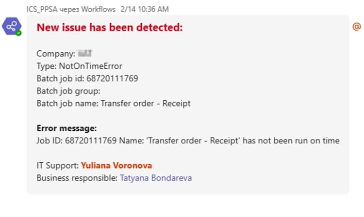 The Integration core provides instant notifications to Microsoft Teams, email and mobile apps. This ensures that relevant business users and IT support teams are immediately notified of the current status of batch jobs execution and can quickly respond to active errors and changes in the system.