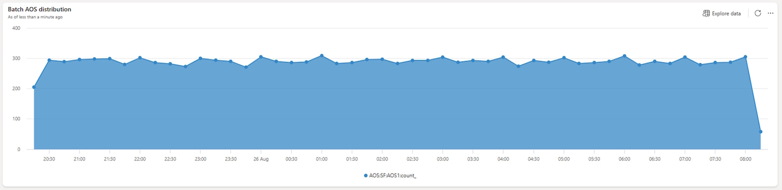Dashboards for analysing information can be configured in Power BI or Azure Data Explorer. They show currently running and completed batch jobs (with success or error status), as well as detailed information on all active batch jobs: