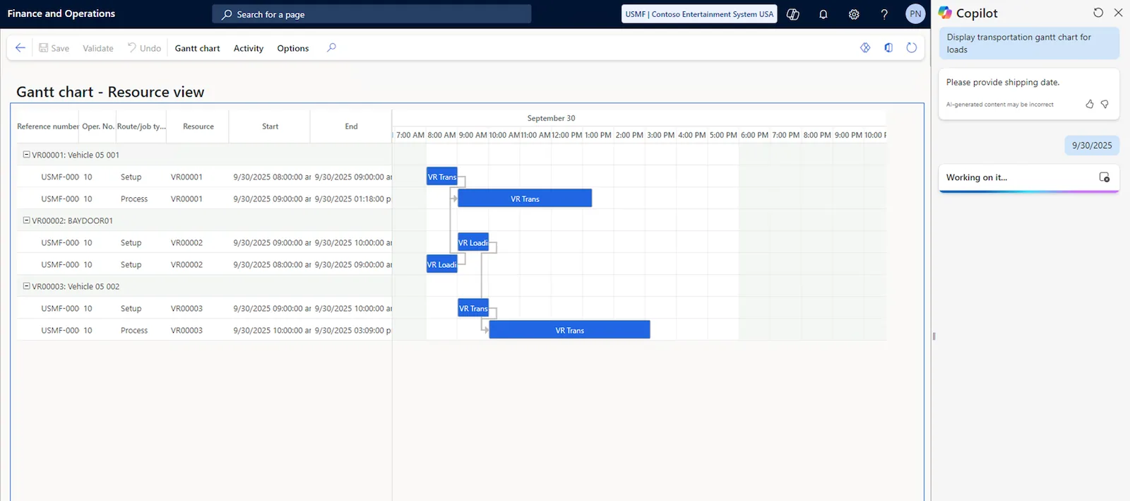 We are developing scenarios where Copilot generates proposed loads with automatic assignment of transportation resources upon request and suggests how to assign resources to all loads in case of a shortage.