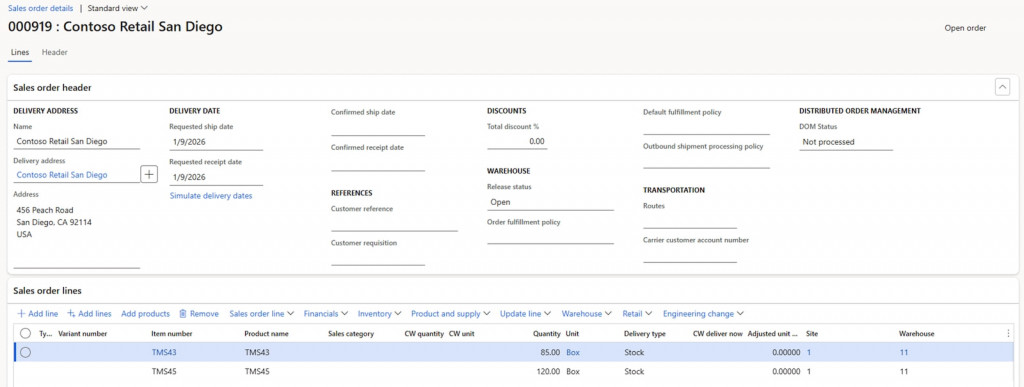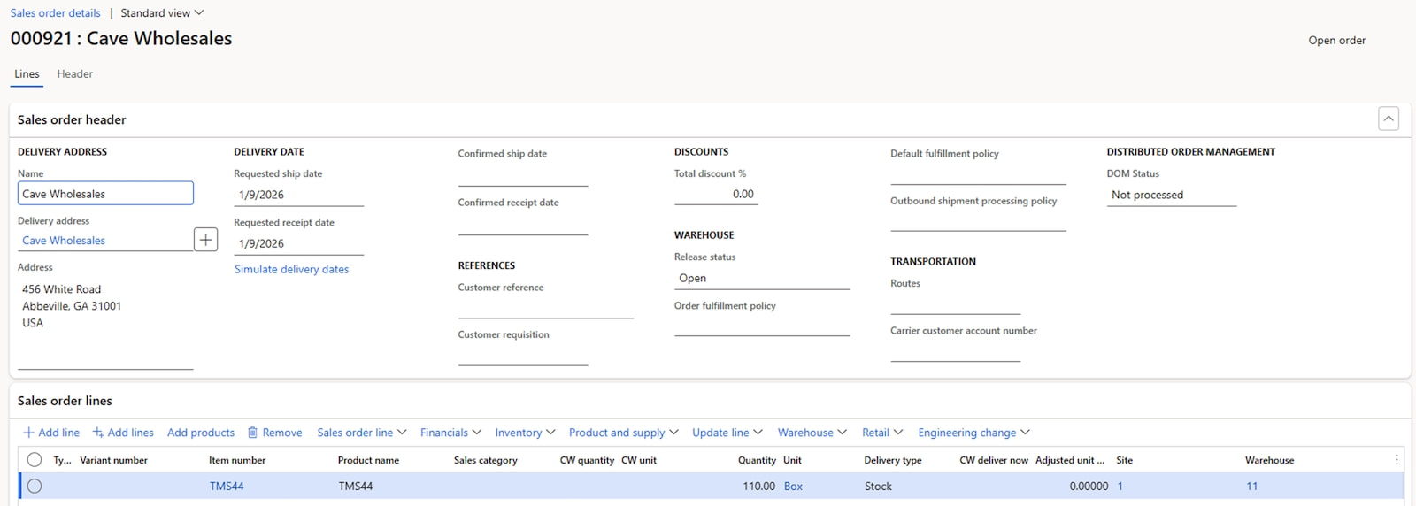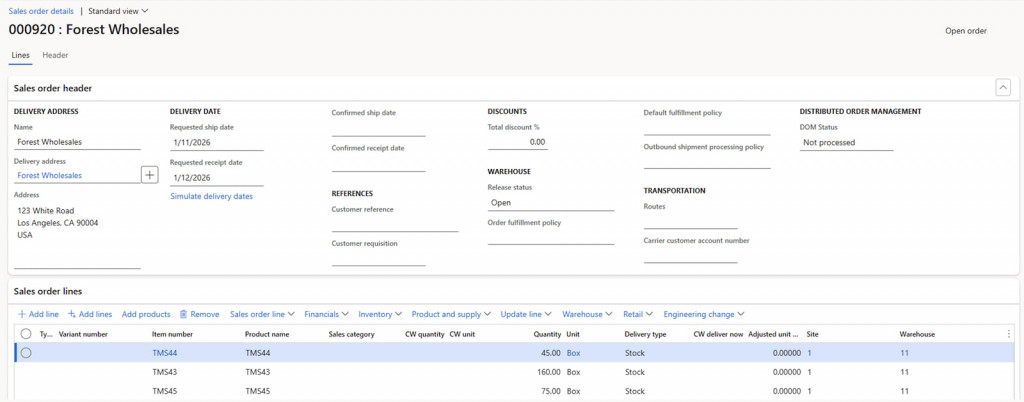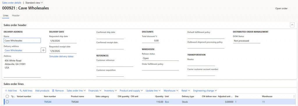 As part of developing the solution’s functionality, it was necessary to check how the system generates routes under different conditions. This requires creating sales orders with various parameters: different customers and addresses, weight and volume variations, combinations of items, and multiple load templates.