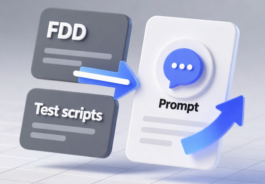The key principle of this approach is no additional overhead for the team. As input, we use existing project artifacts: Functional Design Documents (FDDs) and test scenarios prepared by consultants. These textual descriptions already contain all the information required to generate test data and do not require preparation of additional instructions.