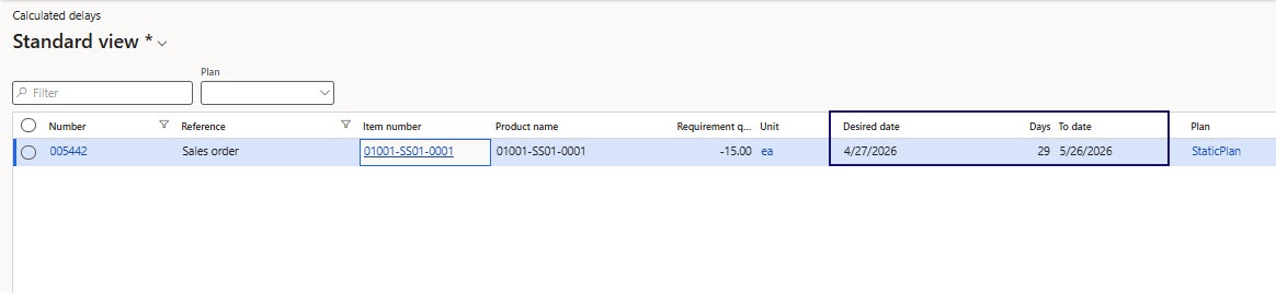 For each transaction, the calculated “Shortage calculation date” is displayed, which serves as the base date for shortage formation.