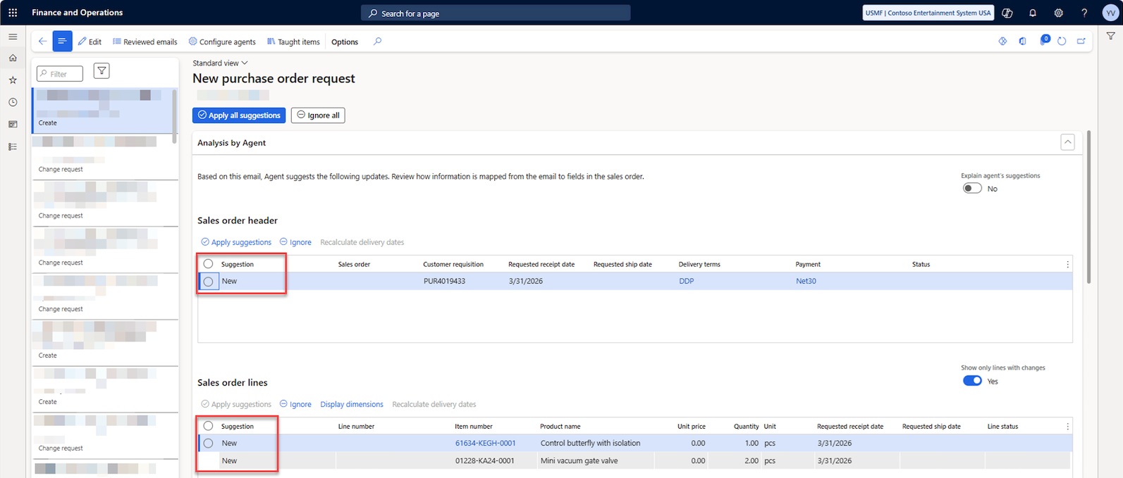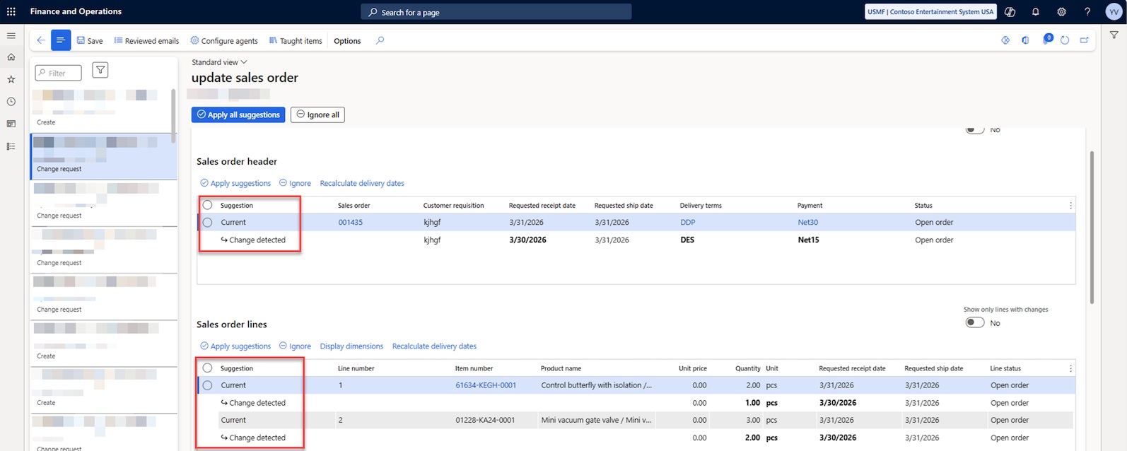 In addition to basic scenarios, the agent supports more granular control over changes. Users can decide which changes to apply and which to ignore – both at the order level and at the individual line level. This is especially important when emails contain partial corrections or ambiguous wording. Such an approach helps avoid unintended changes and ensures full control over order status.