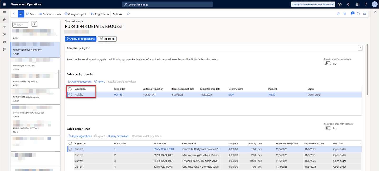 Each such email requires analyzing its content, reconciling it with system data, locating the relevant order, manually applying changes, preparing responses for customers, etc. As a result, a disproportionate amount of time is spent on simple operations, and employees switch between emails and D365 dozens of times a day.