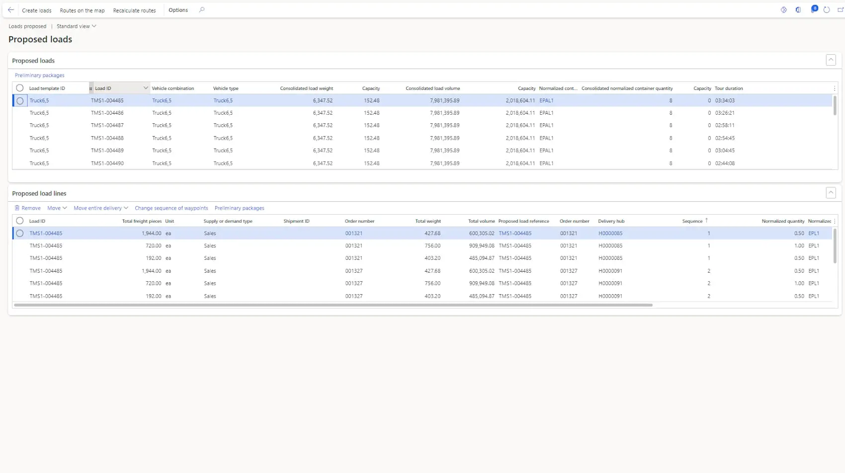 ✅ Loads are calculated based on the planned number of pallets. It is also possible to consolidate goods from different customers into one mixed pallet.